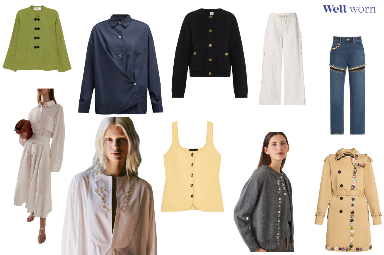 I feel as though whimsical buttons are sewn into Libertine’s DNA. This button-down shirt is a great example, and so is this embellished trench coat. (There’s a lot of brand inventory on TheRealReal, if this is your jam. Iconic Bergdorf stylist Betty Halbreich was a fan.)