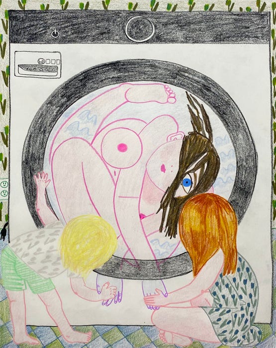 Hello there! This week’s newsletter looks a little different. I won’t be sharing articles or recipes or links, but something better, something a little deeper. Once a month, I’ll be devoting All’s Well to conversations with creative women who inspire me. First up, Brooklyn-based artist Madeline Donahue. I was immediately drawn to Madeline’s work for her intimate, honest, at times chaotic, portrayals of motherhood. As a new mom myself, I’m realizing how rare it is to find representations of motherhood in our culture that feel authentic to the messy, yet beautiful, experience of it. Madeline’s paintings, ceramics, and drawings encapsulate just that. Now more than ever, as my mind reels in despair over the idea that a woman’s autonomy—her decision to be a mother, and when and how—would ever be in question, these representations matter.