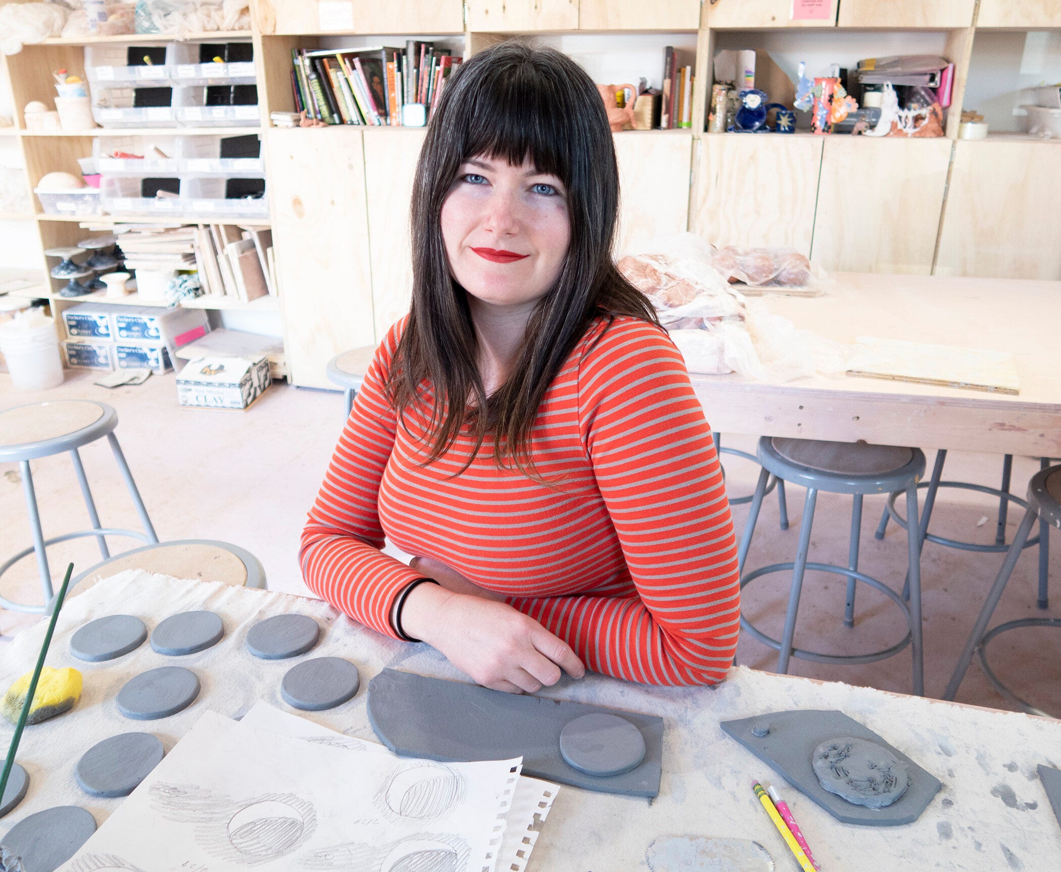 With my second now, after living in COVID for two and a half years, it’s total chaos. When the pandemic started, we went up to Connecticut to stay with my in-laws, just to be able to be outside more, and that’s really when I shifted gears. I would set up my materials in the morning on the dining room table at my in-laws’ house, and then would work throughout the day. Now, I kind of work all the time—even though I’m home with my kids most of the time. I think it’s really good for kids to see their parents work. It teaches them how to be adults. I love having a life where I get to be an artist and can work whenever I want. I can leave to go participate in my kids’ lives and I can come back and work. I love the back and forth.
